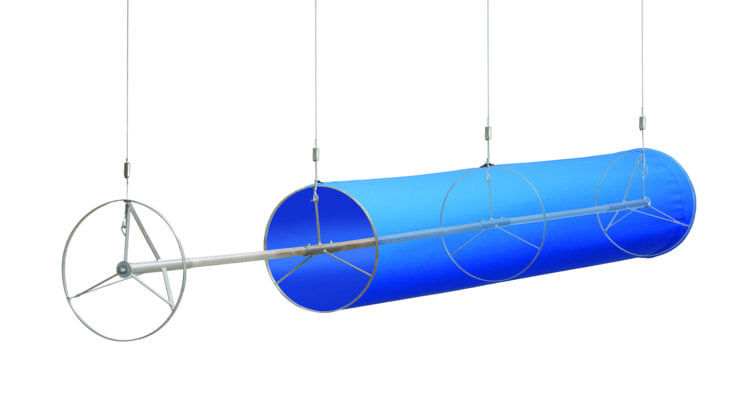 Skelecore offers an internal support structure that maintains the DuctSox round profile when the air is off. The Silencer is a silencer made out of fabric to not only lower noise from the air handler, but maintains a consistent look of fabric at the start of the duct system.