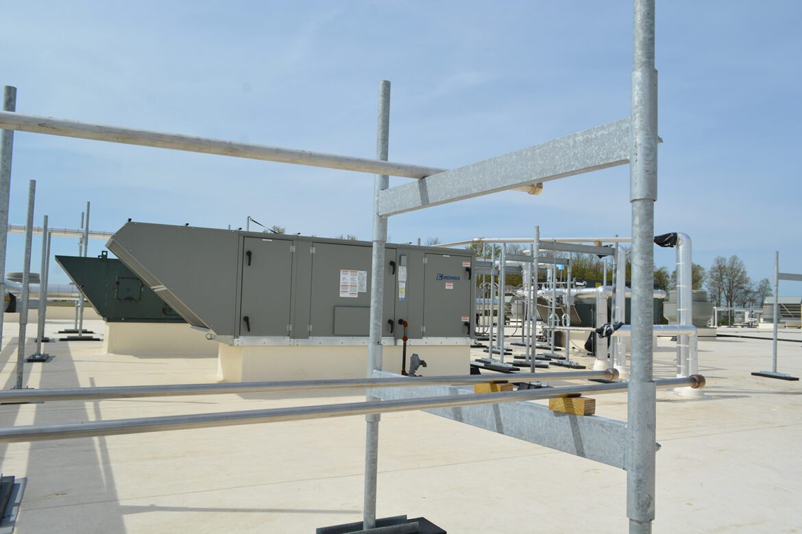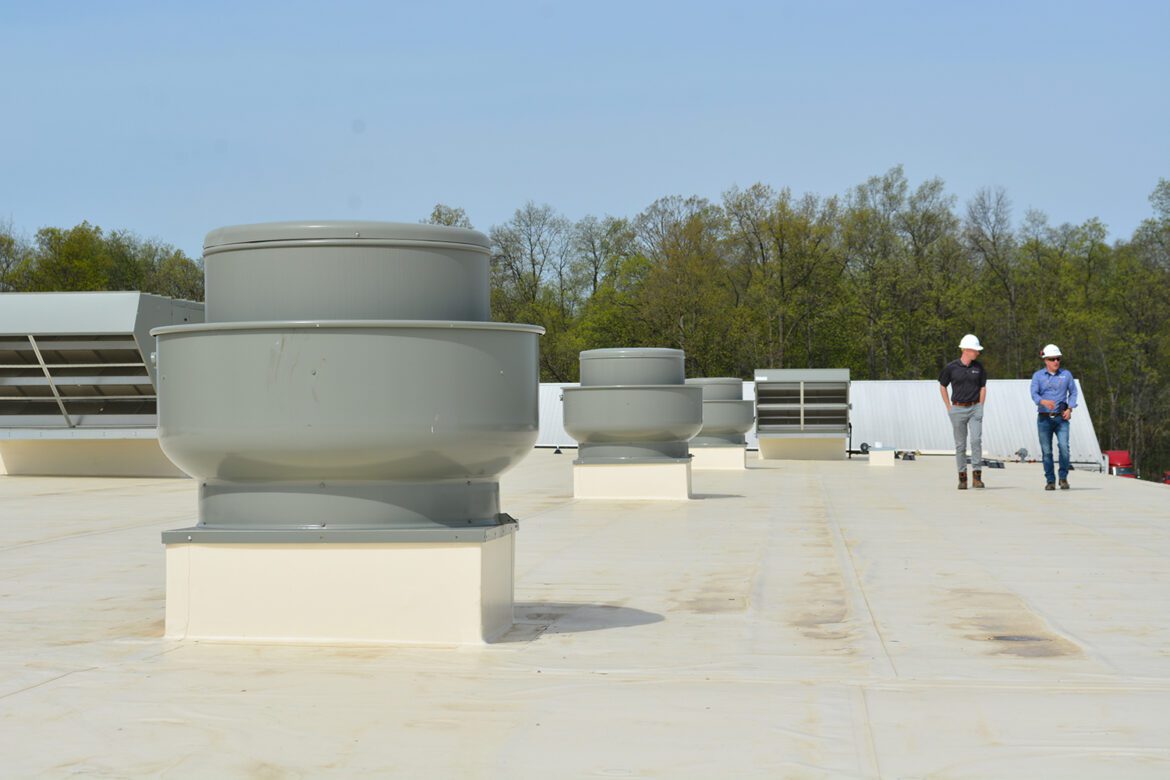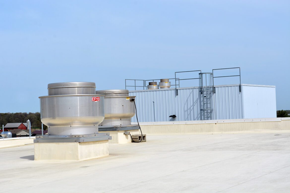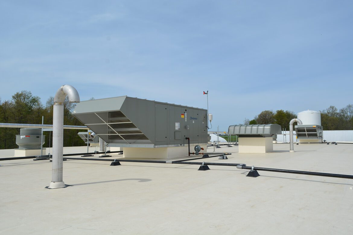 Air Control Products recently had the privilege to assist Kidron Electric with their Gerber West Addition in Kidron Ohio. The Gerber Poultry West Addition provided some unique HVAC design challenges.There were multiple areas that needed to be controlled independently to maintain proper pressurization between the spaces. Additionally, there were multiple operating modes that needed to be considered (summer/winter, operation/sanitization/unoccupied). Another major factor is the corrosive environment and heavy use of the HVAC equipment. This project utilized a design-build approach, which allowed Kidron Electric to partner with Air Control Products to select the appropriate equipment for the project including