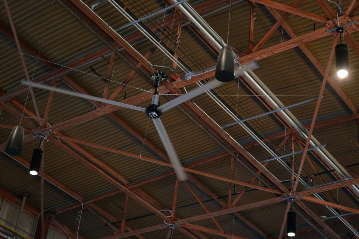 In place of the outdated radiant heaters and roof exhaust fans from the 1950s, the project introduced state-of-the-art Greenheck HVLS (High Volume Low Speed) fans, supplied by Air Control Products. These advanced, green technology-driven fans ensure optimal comfort across the vast entertainment space, demonstrating the significant impact of thoughtful renovation.