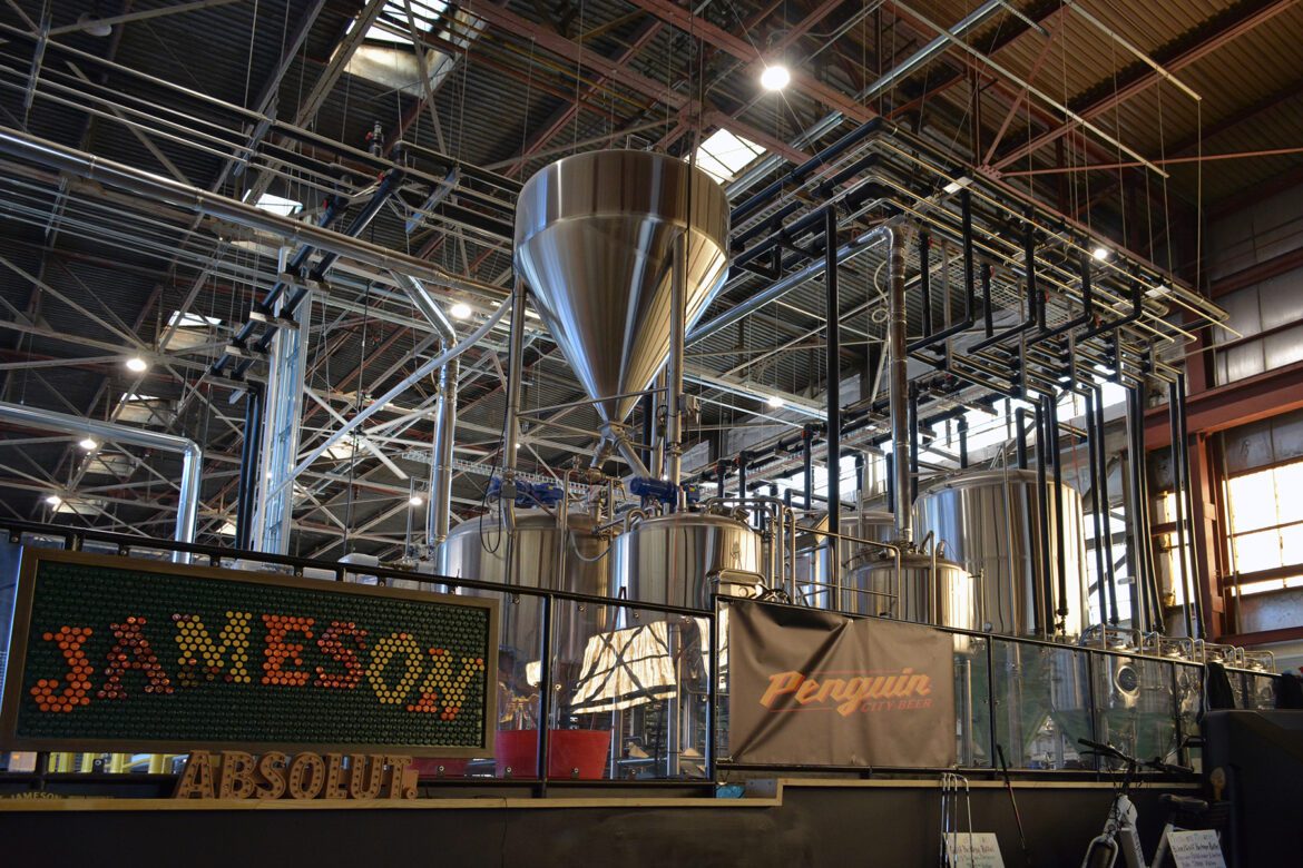 The transformation of this historic space stands as a testament to resilient cities and the power of modern engineering solutions. The logo on the side of the brewery proudly proclaims, “Tough Times Don’t Last, Tough Cities Do!”